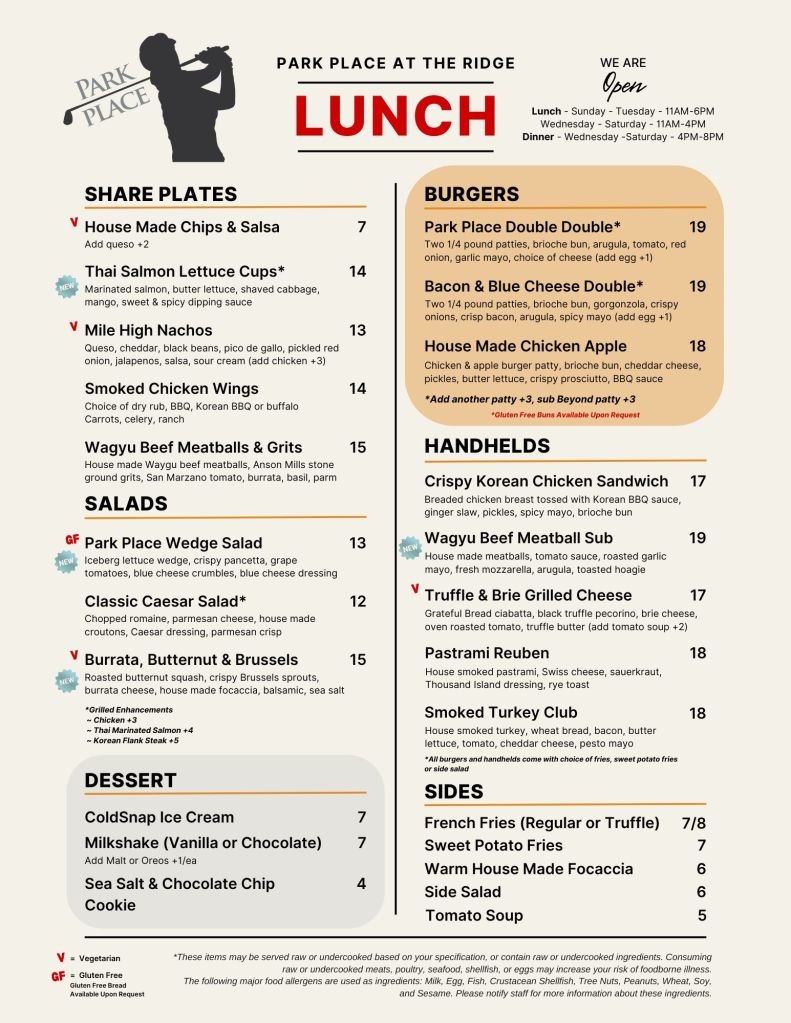 Our phone number has changed! 303.647.8996 Park Place at The Ridge Hours of Operation Park Place Click Here to View Our Course Calendar